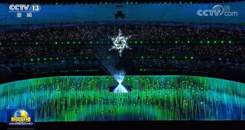 盛會即將結束,又到了分別的時刻。中國古人常折柳送別,寄托思念之情。365名各行各業(yè)、不同年齡的普通人手捧柳枝,匯聚在場地中央,代表一年365天的思念。白色的光束從場地中央亮起,形成一座光的豐碑,承托起主火炬“大雪花”。大屏幕播放短片《2022,有我們!》,記錄下冬奧會一個個溫暖人心的場景。