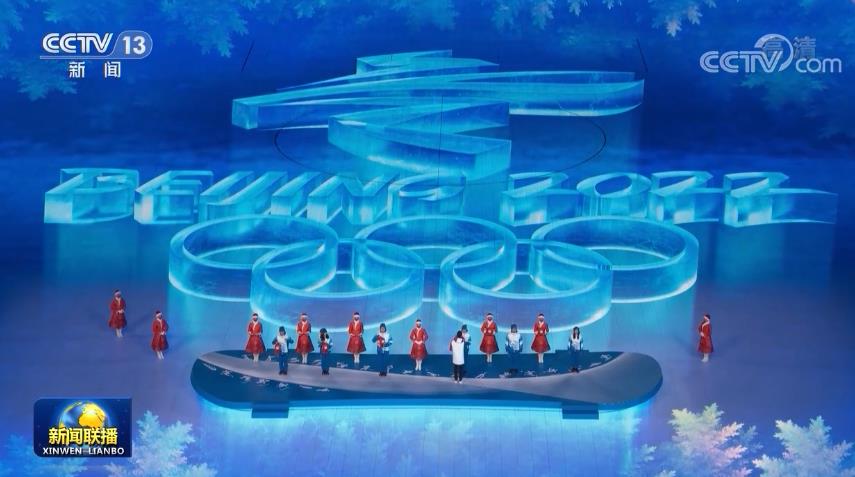 來自河北阜平山區(qū)的孩子們再一次唱響奧林匹克會歌,奧林匹克會旗在歌聲中徐徐降下。