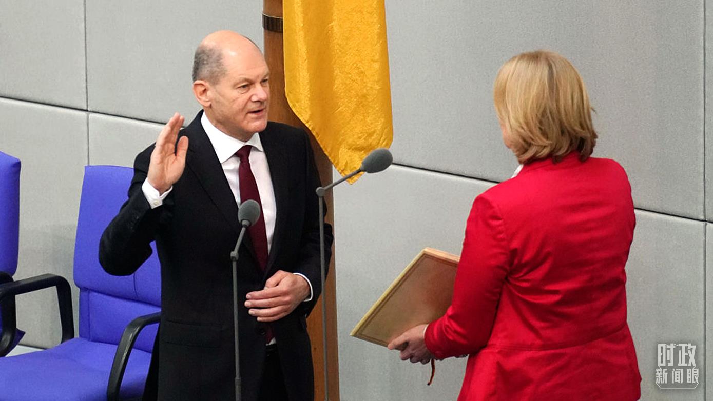 △2021年12月8日,德國新任總理朔爾茨在德國聯(lián)邦議院宣誓就職。(圖/視覺中國)