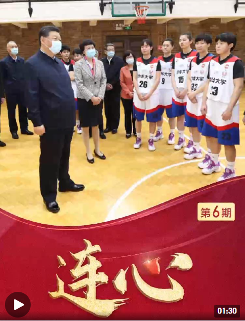 2021年4月19日,習近平總書記來到清華大學考察。學校西體育館內,正在訓練的?;@球運動員們見到了他們的“學長”習近平。