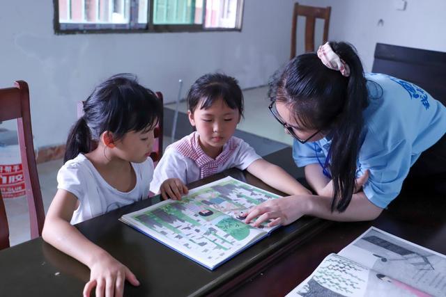 青年志愿者在重慶酉陽縣青少年之家為兒童講讀繪本故事。