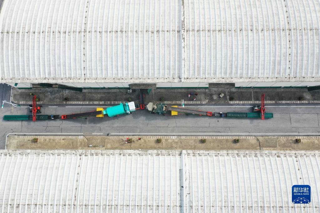 5月24日,在中央儲備糧鄧州直屬庫有限公司內(nèi),糧食入庫全套流程設(shè)備已架設(shè)完畢(無人機照片)。新華社記者 張浩然 攝