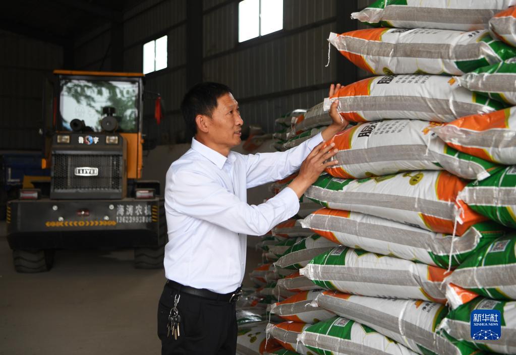 5月26日,在河南省南陽市唐河縣湖陽鎮(zhèn)張灣村,種糧大戶趙建成在整理倉庫里的化肥,準(zhǔn)備夏收之后的夏種。新華社記者 張浩然 攝