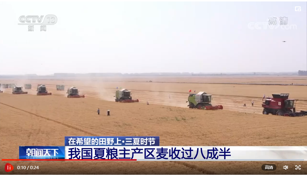 央視網(wǎng)消息:農(nóng)業(yè)農(nóng)村部在昨天(6月15日)發(fā)布的小麥機(jī)收進(jìn)度顯示,全國(guó)已收獲小麥面積2.62億畝,收獲進(jìn)度86%。