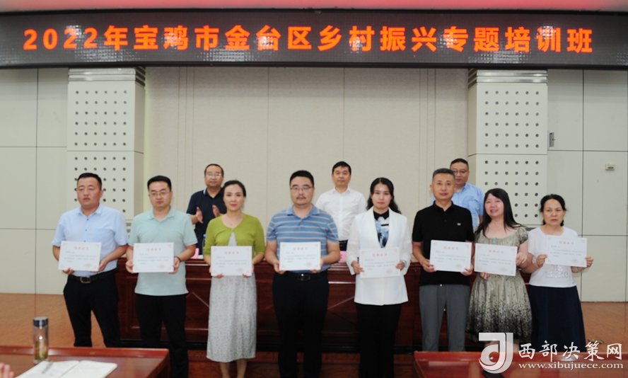 西部決策網(wǎng)訊 8月6日下午,為期三天的“2022年寶雞市金臺區(qū)鄉(xiāng)村振興專題培訓班”結(jié)束了!60余學員順利的拿到了結(jié)業(yè)證。寶雞文理學院經(jīng)濟管理學院院長、陜西鄉(xiāng)村振興研究中心主任劉輝;金臺區(qū)政府副區(qū)長郭小軍出席了結(jié)業(yè)儀式。參加結(jié)業(yè)儀式的還有金臺區(qū)鄉(xiāng)村振興局主要負責人、分管領(lǐng)導,各鎮(zhèn)涉農(nóng)街道黨(工)委書記和鄉(xiāng)村振興工作分管領(lǐng)導,區(qū)委實施鄉(xiāng)村振興戰(zhàn)略領(lǐng)導小組和區(qū)委抓黨建促鄉(xiāng)村振興領(lǐng)導小組各成員單位分管領(lǐng)導。結(jié)業(yè)儀式由金臺區(qū)鄉(xiāng)村振興局局長鄭偉平主持。