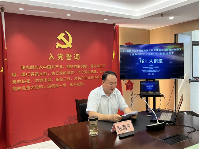 8月12日上午,陜西省建設(shè)工程質(zhì)量安全監(jiān)督總站黨支部堅(jiān)持以黨建引領(lǐng)安全方面各項(xiàng)工作,組織開展《危險(xiǎn)性較大的分部分項(xiàng)工程專項(xiàng)施工方案編制指南》線上講座。此次講座邀請(qǐng)了杭州品茗安控信息技術(shù)股份有限公司專家講師鄧文梓教授做詳細(xì)培訓(xùn),陜西省各級(jí)質(zhì)量安全監(jiān)督機(jī)構(gòu)分別在各分會(huì)場(chǎng)通過(guò)視頻直播的方式相聚云端。各施工單位、監(jiān)理單位及在建項(xiàng)目的安全管理人員、技術(shù)負(fù)責(zé)人等共計(jì)一萬(wàn)余人參與學(xué)習(xí)。