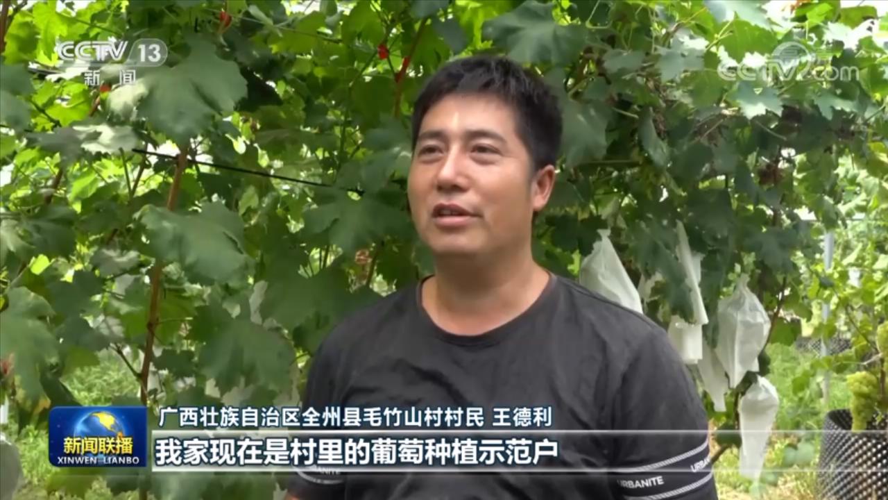 廣西壯族自治區(qū)全州縣毛竹山村村民 王德利:去年總書記來我們家,囑托我們注重學習科學技術(shù),用知識托起鄉(xiāng)村振興。我家現(xiàn)在是村里的葡萄種植示范戶,去年光葡萄一項,我家就收入10多萬元。
