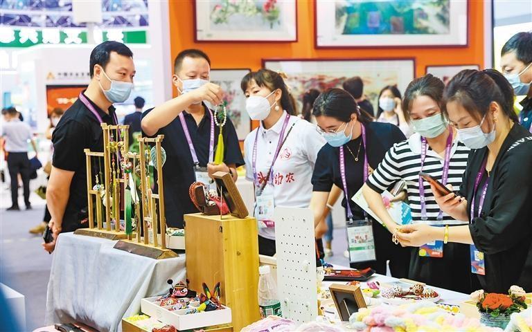 編織、刺繡、剪紙、干貨、果蔬、果酒……9月15日,第29屆楊凌農(nóng)高會B館的巾幗科技助農(nóng)暨特色產(chǎn)業(yè)成果展廳里,琳瑯滿目的婦女手工藝品和種類多樣的農(nóng)副產(chǎn)品吸引著八方來客。