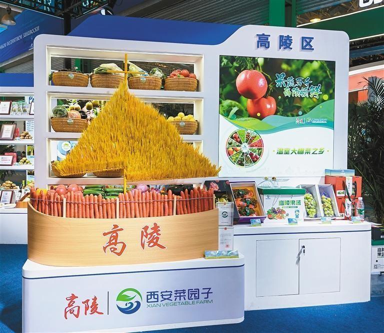 西安“菜園子”高陵區(qū)為本屆農(nóng)高會帶來了“帆船”造型的果蔬大菜籃,只見這艘由小麥為帆,“乘坐”著紅黃彩椒、國家地理標(biāo)志耿鎮(zhèn)胡蘿卜、貝貝南瓜、洋蔥、青翠乳瓜、水果西紅柿的“帆船”仿佛正揚帆起航、乘風(fēng)破浪,昭示著西安市春夏秋冬四季蔬果供應(yīng)不斷,市民群眾的菜籃子、米袋子、果盤子豐富多彩,生活蒸蒸日上。