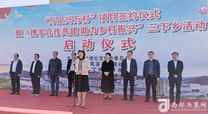 西部決策網(wǎng)訊 9月28日,為進(jìn)一步落實(shí)全市黨派工作協(xié)同協(xié)商會(huì)議精神,九三學(xué)社寶雞市委、鳳縣工商聯(lián)“萬企興萬村”項(xiàng)目簽約儀式暨“攜手合作共建 助力鄉(xiāng)村振興”三下鄉(xiāng)活動(dòng)啟動(dòng)儀式在鳳縣平木鎮(zhèn)隆重舉辦。 寶雞市人大常委會(huì)副主任、九三學(xué)社寶雞市委主委車爽,鳳縣人大常委會(huì)主任劉淳,中共寶雞市委統(tǒng)戰(zhàn)部班子成員、二級(jí)調(diào)研員毛建錄,中共鳳縣縣委常委、統(tǒng)戰(zhàn)部部長(zhǎng)吳海濤,九三學(xué)社寶雞市委副主委兼秘書長(zhǎng)郭紅全、副主委李獻(xiàn)軍,中共寶雞市委統(tǒng)戰(zhàn)部黨派科科長(zhǎng)湛玉忠,鳳縣平木鎮(zhèn)黨委書記張紅利、鎮(zhèn)長(zhǎng)鄧振宇,鳳縣工商聯(lián)主席陳強(qiáng)參加簽約儀式和三下鄉(xiāng)啟動(dòng)儀式?;顒?dòng)儀式由郭紅全副主委主持。