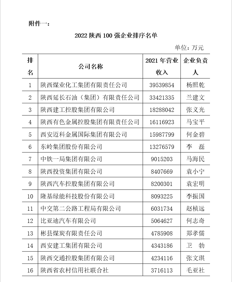 西部決策網(wǎng)訊 12月18日,陜西省企業(yè)家協(xié)會發(fā)布了2022陜西100強企業(yè)和2022陜西民營50強企業(yè)榜單。(具體名單見附件一、二)