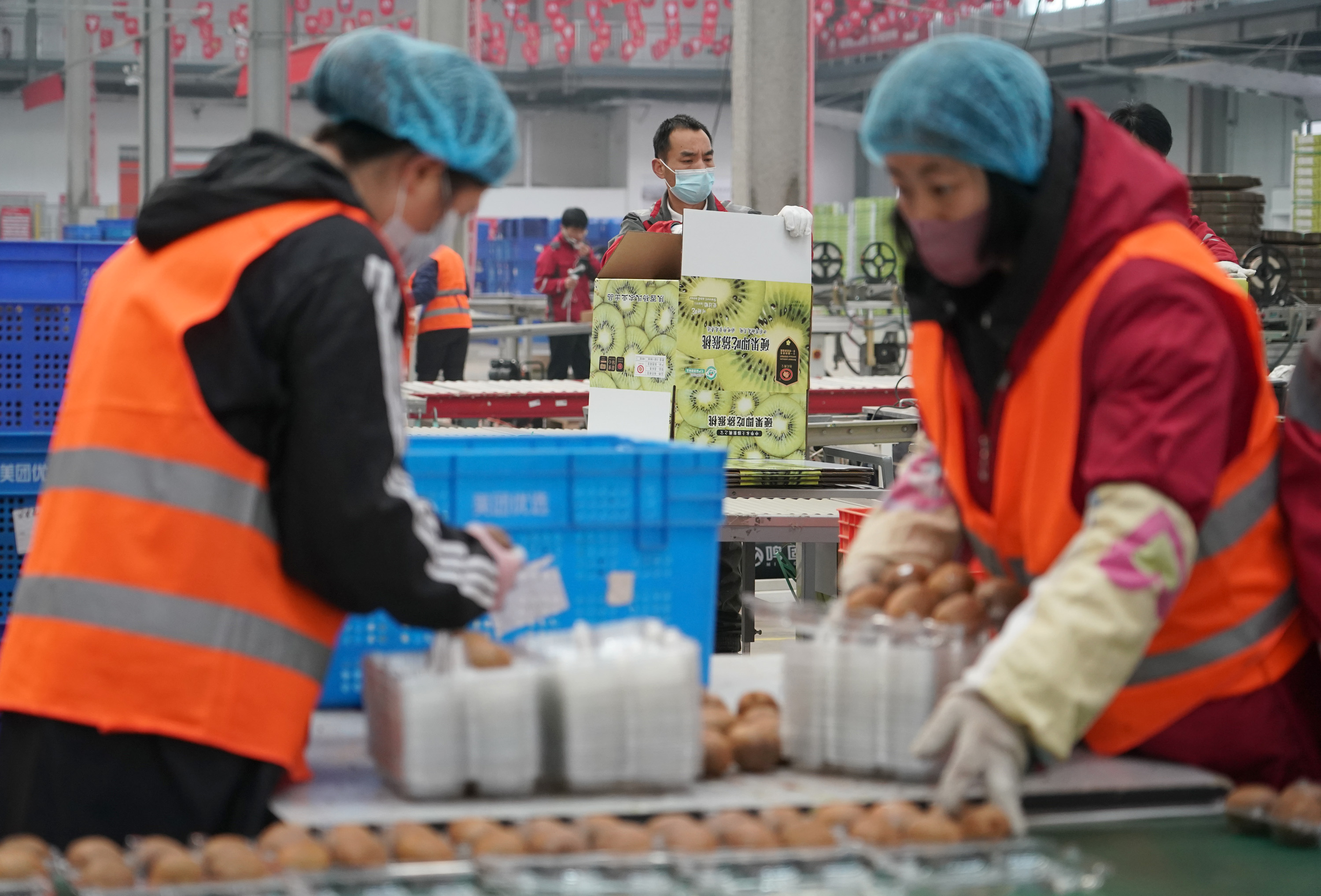 一邊將獼猴桃打包,一邊將快遞單迅速貼在包裝箱上。在位于陜西省武功縣的京東物流陜西智能供應(yīng)鏈中心的自動(dòng)分揀線前,39歲的郭甩維動(dòng)作麻利。這位平時(shí)在家種植獼猴桃的當(dāng)?shù)剞r(nóng)民,利用農(nóng)閑時(shí)間來此工作。“既能照顧家,還能掙一份錢貼補(bǔ)家用。我自己種果子,也懂果子,挺喜歡這份工作。”她說。