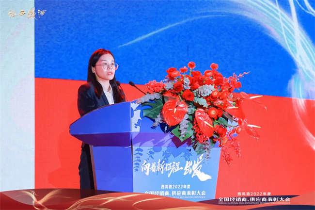 周艷花作題為《強基固本 以高標準引領(lǐng)營銷高質(zhì)量發(fā)展,奮揖揚帆 以高效能推進西鳳邁上新征程》2022年營銷工作總結(jié)暨2023年營銷工作規(guī)劃