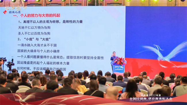 會議宣讀了《關(guān)于對2022年度優(yōu)秀經(jīng)銷商、供應(yīng)商進行表彰獎勵的決定》,并對獲得年度重大貢獻獎、杰出貢獻獎、突出貢獻獎等獎項的優(yōu)秀經(jīng)銷商及供應(yīng)商進行了現(xiàn)場頒獎表彰。