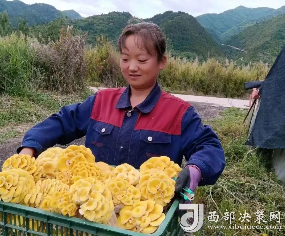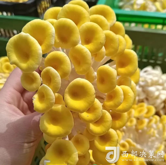 西部決策網(wǎng)訊(記者帥華鋒 通訊員 王雪梅) 時下,當你走進甘肅兩當縣左家鄉(xiāng)食用菌大棚里,一層層菌棒架子上,一簇簇金燦燦的、呈喇叭狀的榆黃蘑新鮮水嫩,好似綻放的金花,長勢喜人,工作人員正在采收成熟的榆黃蘑,一派喜人的豐收景象。