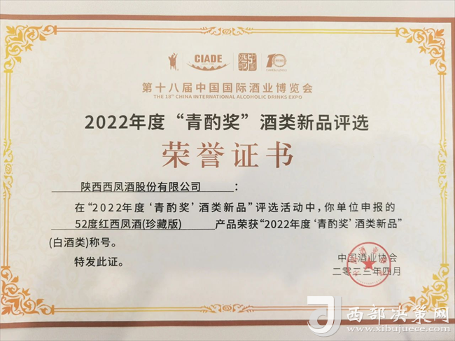 西部決策網訊(記者劉玉 韓宗憲 通訊員 張桓瑞)4月13日,中國酒業(yè)協會發(fā)布2022年度“青酌獎”酒類新品榜單,西鳳酒戰(zhàn)略產品五星紅西鳳榮膺2022年度青酌獎“酒類新品”稱號。同期,西鳳酒參賽作品“西鳳酒·河”,榮獲2023最美酒瓶設計大賽,概念設計組三等獎。