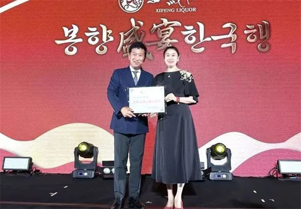 自進入韓國市場以來,西鳳酒以大氣雅致的包裝、卓越優(yōu)秀的品質、醇香甘美的口感贏得了廣大消費者的喜愛,銷售業(yè)績連年翻倍增長,并連續(xù)兩年榮獲“韓國酒類鑒賞大賽”特等獎及“Best of 2023”大獎。會上,陜西西鳳酒股份有限公司副總經理、營銷公司總經理周艷花為韓國華岡酒業(yè)株式會社頒發(fā)“海外拓展獎”,對金嵐洙社長及其團隊為西鳳酒市場拓展所做出的的努力表示感謝。