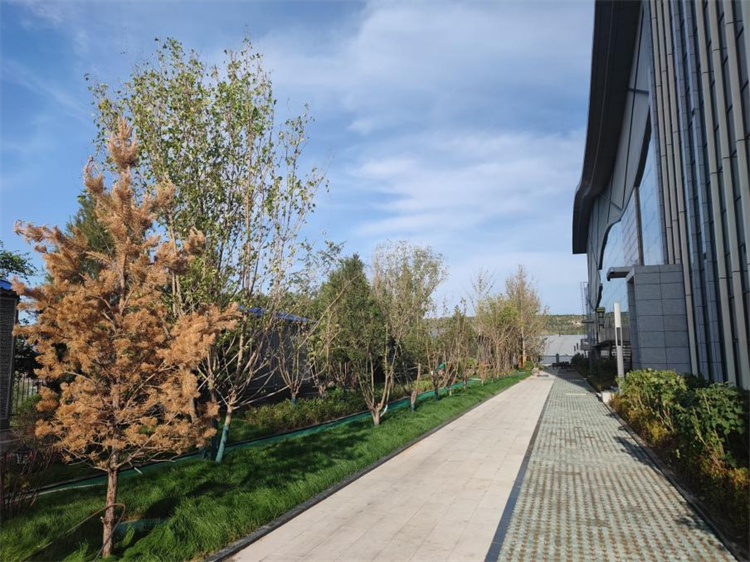 本次景觀提升工程主要對(duì)職工餐廳、文體中心北側(cè)的破損場(chǎng)地進(jìn)行了破除,對(duì)地平進(jìn)行修整后,重新種植了白皮松、叢生五角楓、白蠟、紅瑞木、水蠟等苗木。在留出人行通道的基礎(chǔ)上,設(shè)計(jì)了塑膠跑道,其余部分鋪設(shè)了草坪,并對(duì)區(qū)域圍墻進(jìn)行了修護(hù)??紤]到職工鍛煉休閑的實(shí)際需求,本次景觀提升工程還新安裝了一座公共廁所,設(shè)置了專門的吸煙區(qū)。