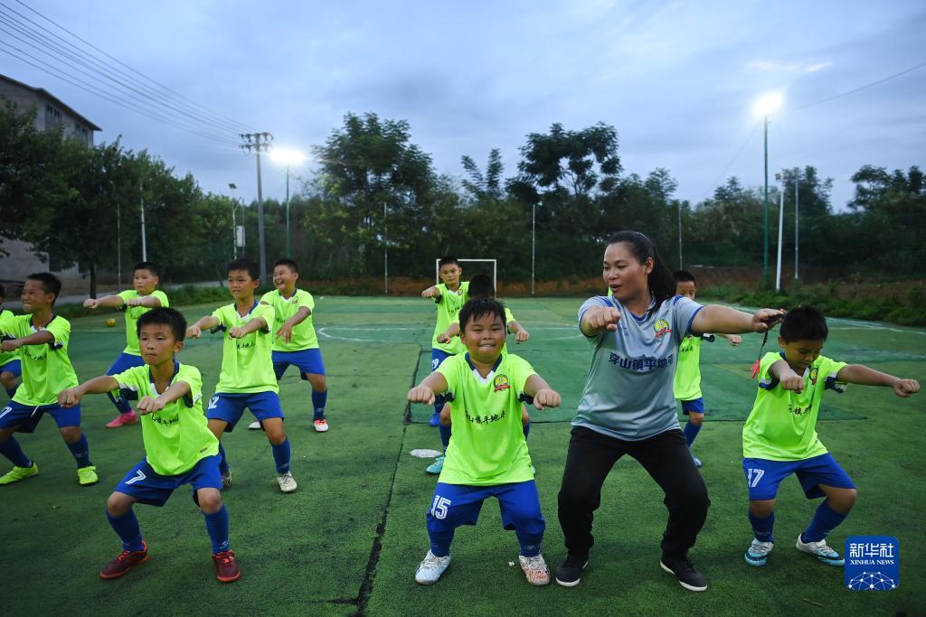 8月7日晚,孩子們?cè)谧闱驁?chǎng)上進(jìn)行訓(xùn)練(無(wú)人機(jī)照片)。