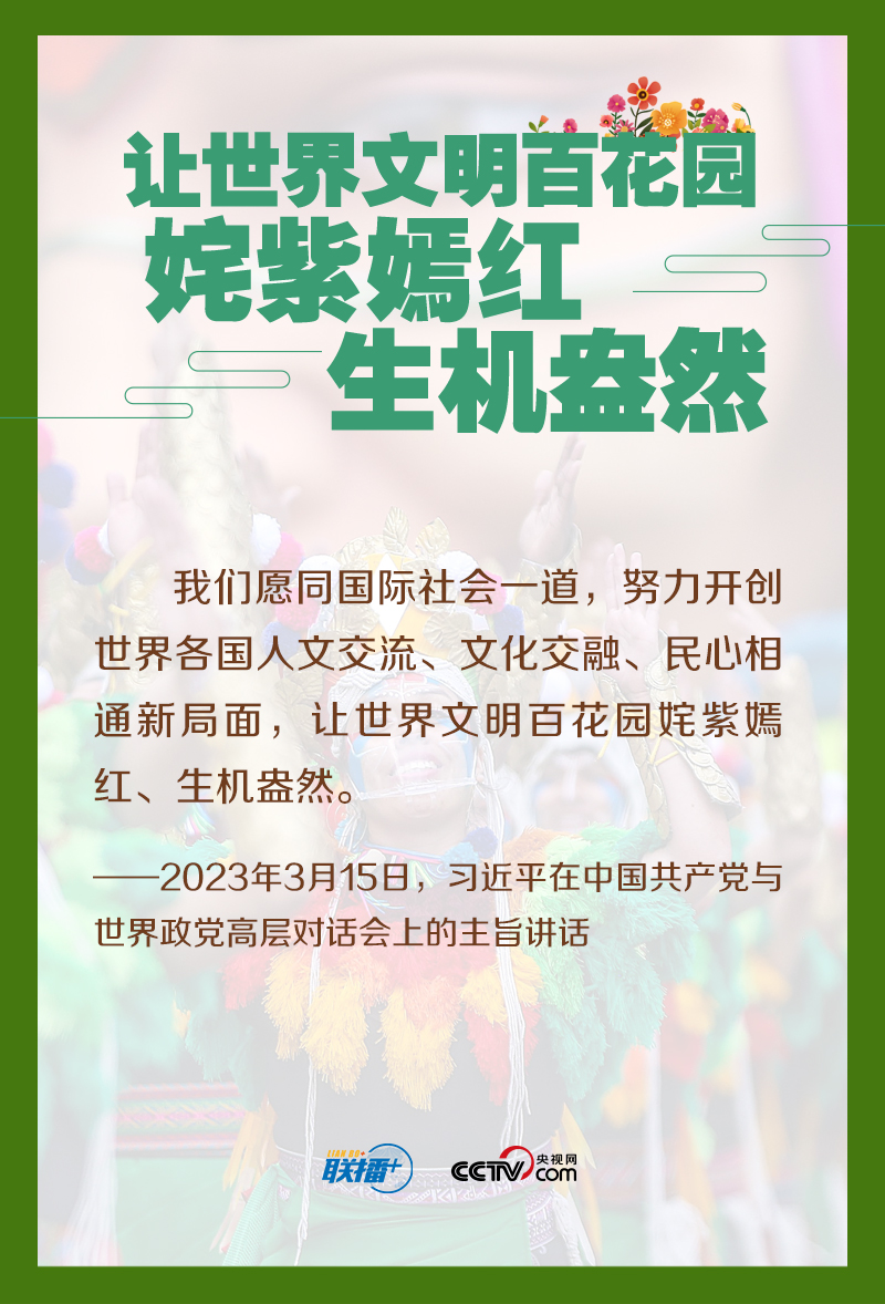 聯(lián)播+2023年年初,習(xí)近平總書(shū)記在中國(guó)共產(chǎn)黨與世界政黨高層對(duì)話會(huì)上首次提出全球文明倡議。他強(qiáng)調(diào),我們要共同倡導(dǎo)加強(qiáng)國(guó)際人文交流合作,探討構(gòu)建全球文明對(duì)話合作網(wǎng)絡(luò),豐富交流內(nèi)容,拓展合作渠道,促進(jìn)各國(guó)人民相知相親,共同推動(dòng)人類(lèi)文明發(fā)展進(jìn)步。