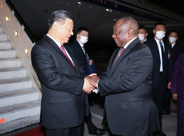 當?shù)貢r間8月21日晚,國家主席習近平抵達約翰內(nèi)斯堡,出席金磚國家領(lǐng)導人第十五次會晤并對南非進行國事訪問。