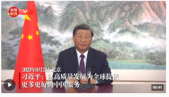 9月2日上午,國家主席習(xí)近平在2023年中國國際服務(wù)貿(mào)易交易會(huì)全球服務(wù)貿(mào)易峰會(huì)上發(fā)表視頻致辭。