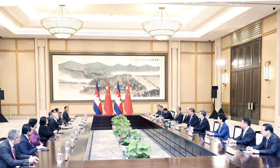 習(xí)近平強調(diào),今年是我提出親誠惠容理念10周年。中柬關(guān)系集中體現(xiàn)了這一理念以及中國堅持與鄰為善、以鄰為伴的周邊外交方針。中國支持柬埔寨走符合本國國情的發(fā)展道路,支持柬埔寨實現(xiàn)穩(wěn)定和發(fā)展,支持柬埔寨在國際和地區(qū)舞臺發(fā)揮重要作用。雙方要保持高層交往,深化互利合作,扎實推進“鉆石六邊”合作架構(gòu),推動“工業(yè)發(fā)展走廊”和“魚米走廊”建設(shè)盡快取得可視成果,服務(wù)各自國家現(xiàn)代化事業(yè)。雙方要持續(xù)推進教育、文化、青年等領(lǐng)域交流合作,讓中柬友好更加深入人心。