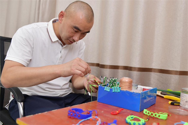 在一張約一平方米的桌子上,擺滿了小燈籠、小手鏈、小掛件……看著如此精致、細(xì)小的工藝品,一位心靈手巧的姑娘形象便會(huì)映入眼簾。