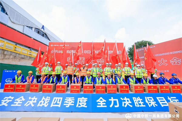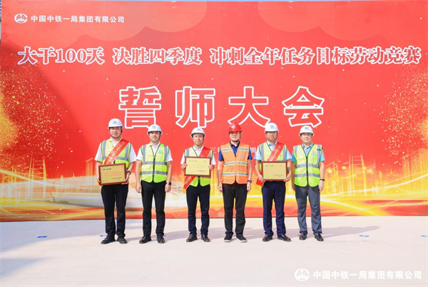 儀式由中鐵一局一公司安全總監(jiān)昝永奇主持。中鐵一局一公司副總經(jīng)理王發(fā)智宣讀了《大干100天 決勝四季度 沖刺全年任務(wù)目標(biāo)勞動競賽方案》。深大城際、深圳地鐵11號線、京港澳高速項目負(fù)責(zé)人分別作表態(tài)發(fā)言。