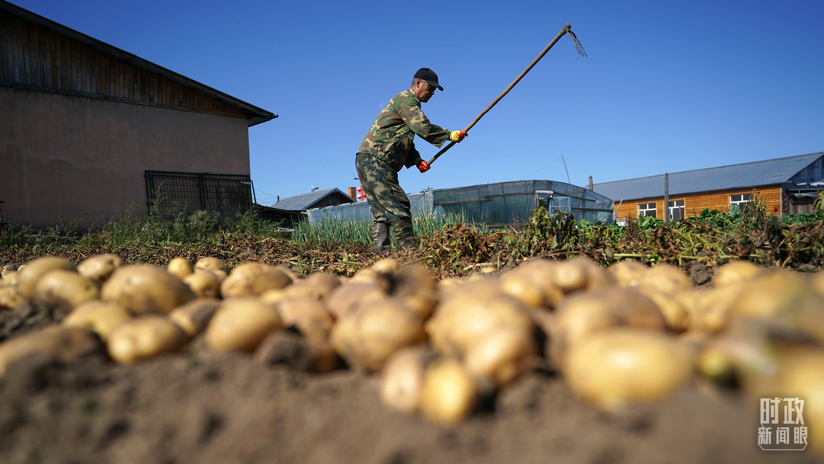 △位于我國大陸最北端的北極村村民正忙著采收自家土豆。(總臺國廣記者李晉拍攝)