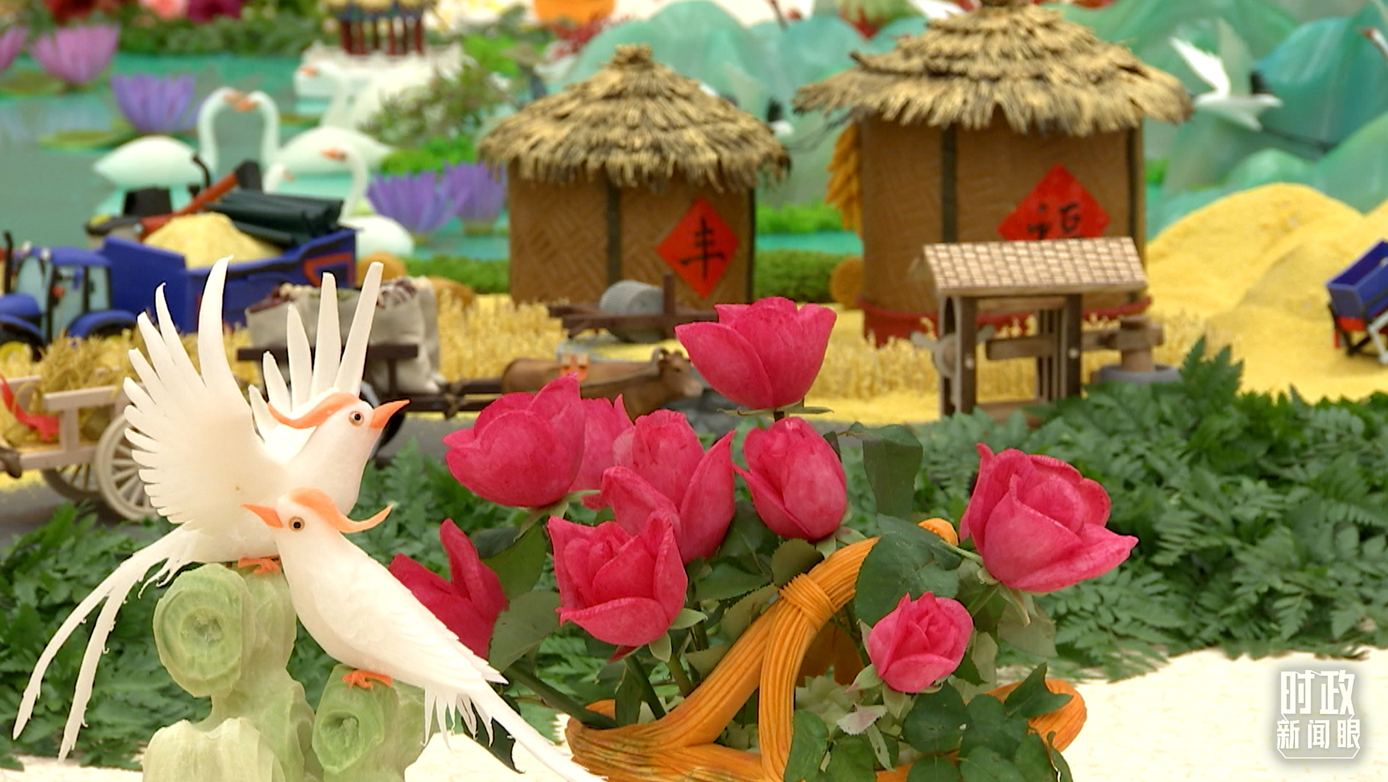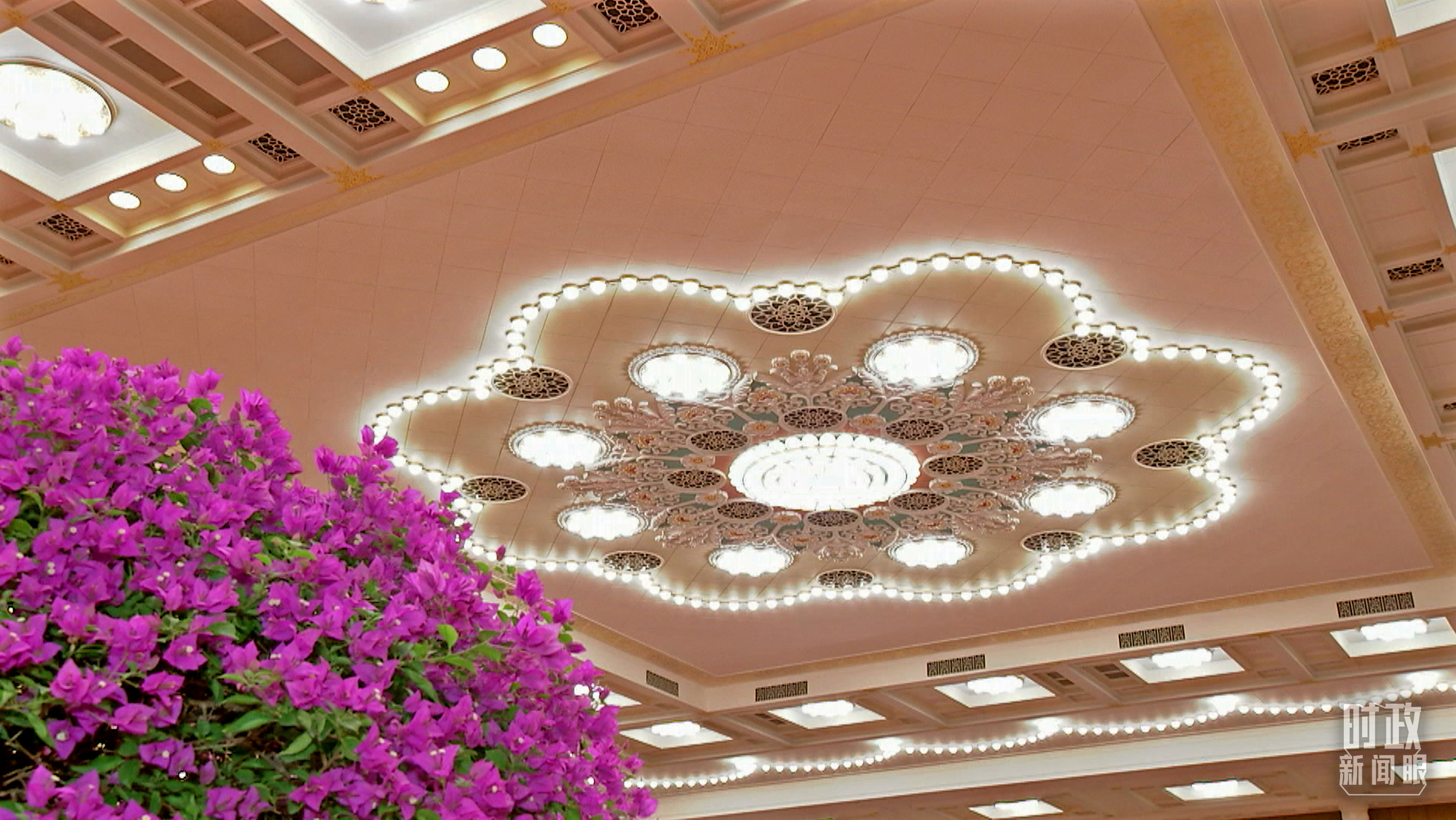 △人民大會堂宴會廳,華燈璀璨、鮮花綻放。