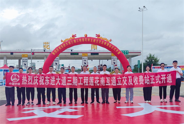 10月8日,由中鐵一局一公司承建的肇慶東進(jìn)大道三期工程蓮花南互通立交及收費(fèi)站正式開通運(yùn)營。肇慶市副市長(zhǎng)謝桂坤,中鐵一局副總經(jīng)理郭秀春,中鐵一局一公司總經(jīng)理韓勝等相關(guān)領(lǐng)導(dǎo)以及肇慶市政府有關(guān)部門、市交通集團(tuán)、設(shè)計(jì)、監(jiān)理和項(xiàng)目參建人員現(xiàn)場(chǎng)共同見證蓮花南互通立交及收費(fèi)站開通。