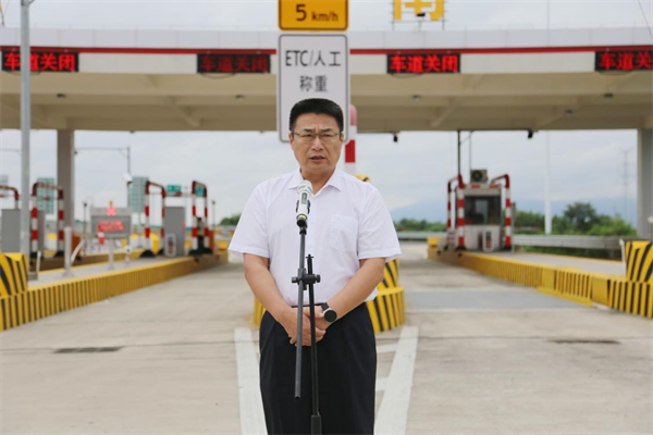 肇慶市副市長(zhǎng)謝桂坤宣布東進(jìn)大道三期工程蓮花南互通立交及收費(fèi)站正式開通