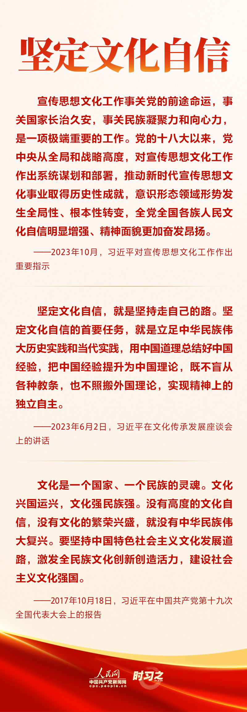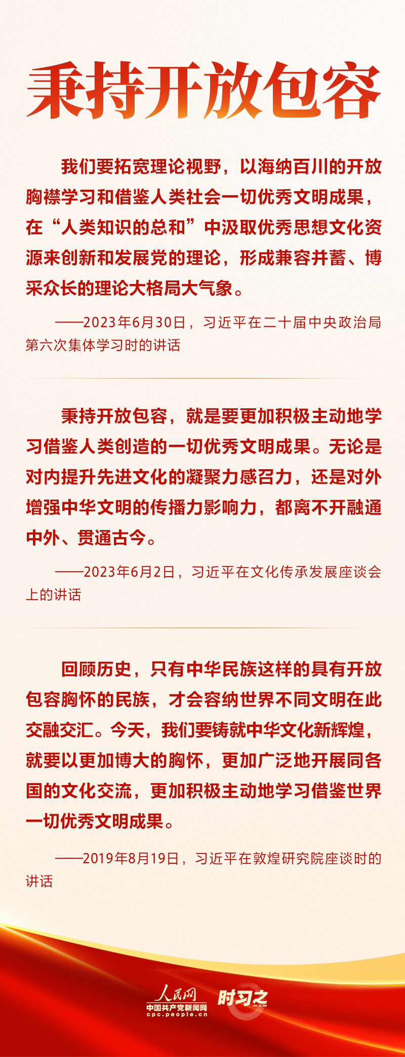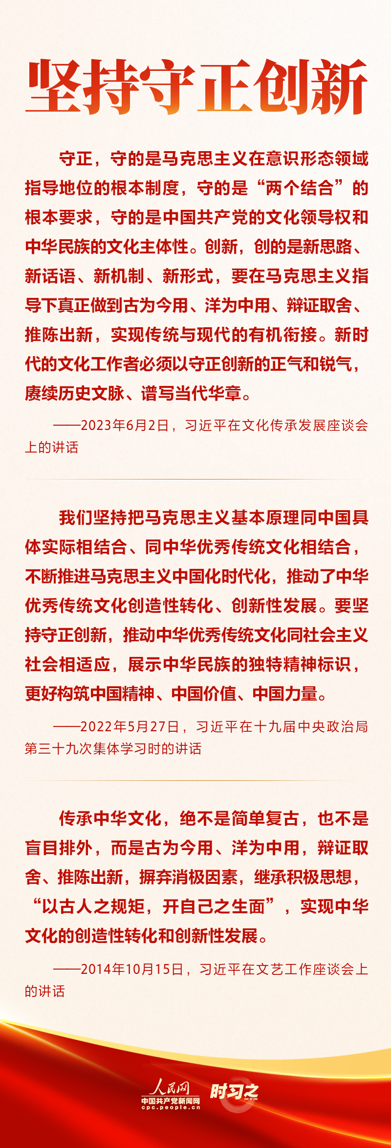 圍繞在新的歷史起點(diǎn)上繼續(xù)推動(dòng)文化繁榮、建設(shè)文化強(qiáng)國(guó)、建設(shè)中華民族現(xiàn)代文明這一新的文化使命,習(xí)近平總書(shū)記一以貫之強(qiáng)調(diào)要“堅(jiān)定文化自信”“秉持開(kāi)放包容”“堅(jiān)持守正創(chuàng)新”。