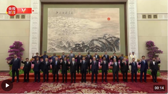 習(xí)近平同出席開(kāi)幕式的外方領(lǐng)導(dǎo)人集體合影。
