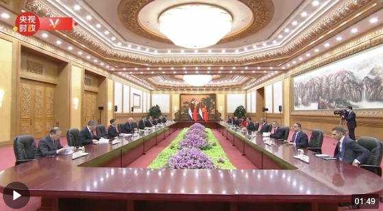 10月19日上午,國家主席習近平在人民大會堂會見來華出席第三屆“一帶一路”國際合作高峰論壇的埃及總理馬德布利。