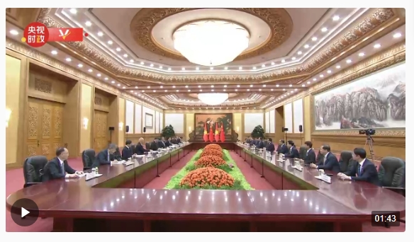 10月20日上午,國(guó)家主席習(xí)近平在人民大會(huì)堂會(huì)見(jiàn)來(lái)華出席第三屆“一帶一路”國(guó)際合作高峰論壇的越南國(guó)家主席武文賞。