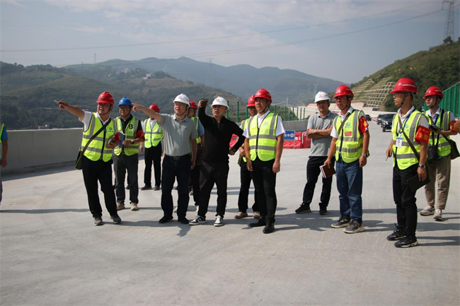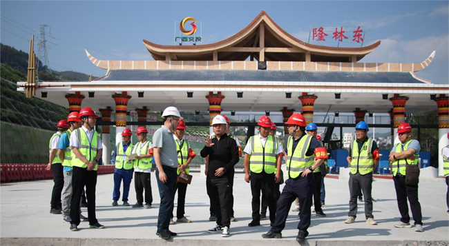 白雷一行深入踏勘了隆林東收費站、隆林東互通主線橋及平班2號隧道施工現場,聽取了項目負責人對工程建設進度、安全質量管控等情況的介紹,他對項目建設取得的階段性成果表示肯定,并對接下來的工作提出具體要求:一要緊盯目標任務,加快推進項目進度,進一步優(yōu)化施工計劃,倒排工期節(jié)點任務,科學合理調配力量,搶抓施工黃金期,確保偉隆高速公路一期工程如期建成。二要抓好安全生產,確保項目建設穩(wěn)定,嚴格履行安全監(jiān)管職責,落實安全施工標準化、規(guī)范化要求,加強對現場施工的監(jiān)督管理,做到干成事、不出事,確保項目安全生產態(tài)勢平穩(wěn);三要加強安全生產知識的培訓宣貫,認真落實廣西交投集團“每日六問”“六個全面”、抓好“三管三必須”“班前五分鐘”“紅袖章”等安全工作,保障項目安全生產。