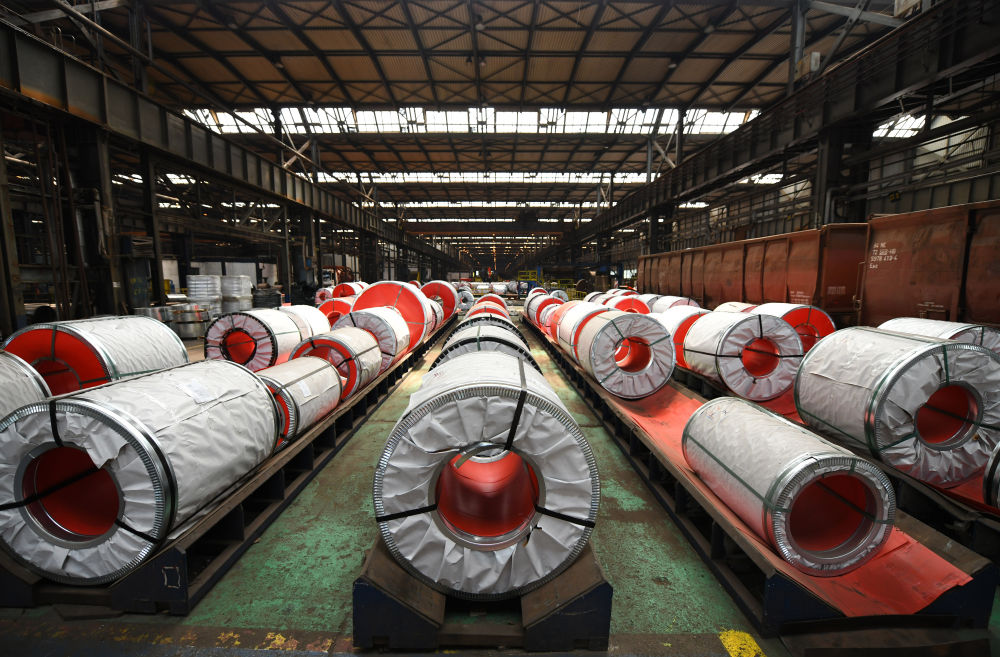 這是在河鋼集團(tuán)塞爾維亞斯梅戴雷沃鋼廠拍攝的成品鋼卷(2023年5月5日攝)。新華社記者 任鵬飛 攝