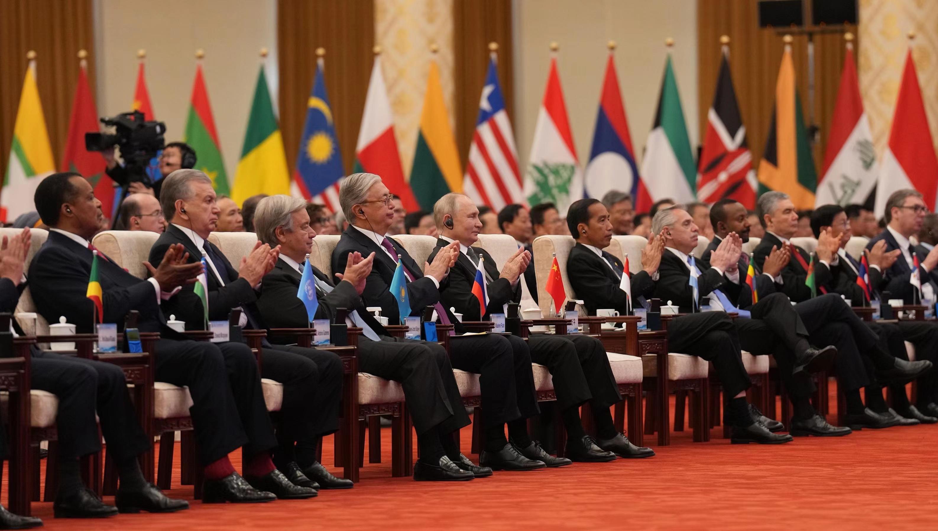 肯尼亞總統(tǒng)魯托、尼日利亞副總統(tǒng)謝蒂馬、泰國總理賽塔、越南國家主席武文賞都是就任后首次訪華,俄羅斯總統(tǒng)普京、塞爾維亞總統(tǒng)武契奇、烏茲別克斯坦總統(tǒng)米爾濟約耶夫、匈牙利總理歐爾班、聯(lián)合國秘書長古特雷斯連續(xù)3屆出席“一帶一路”國際合作高峰論壇??梢哉f,這是一場老友新朋的千里相會。