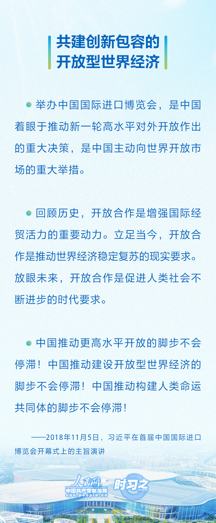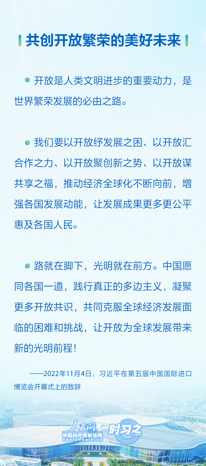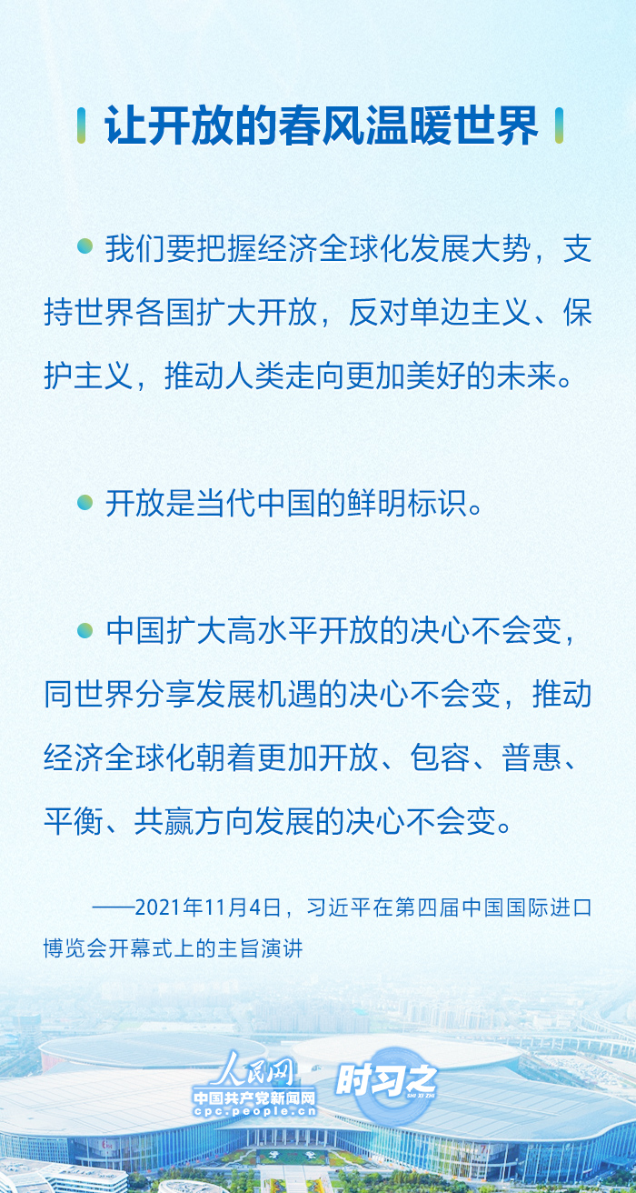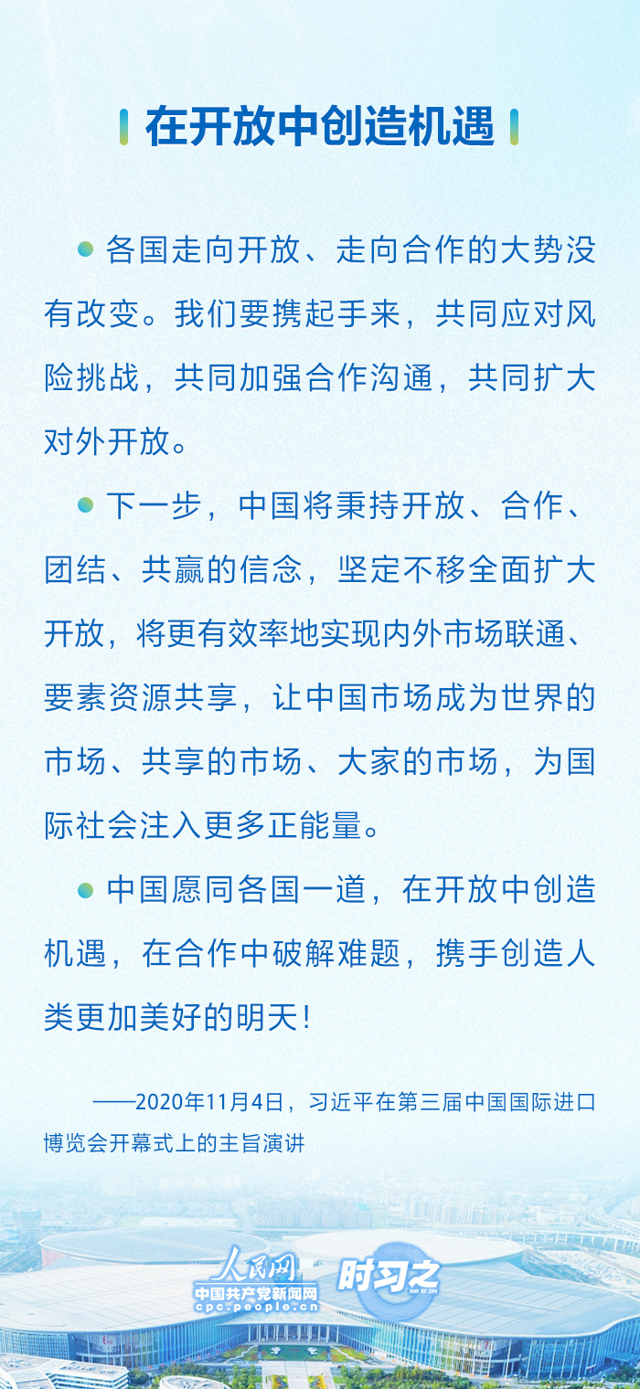 自首屆以來,國家主席習(xí)近平連續(xù)五屆出席進(jìn)博會開幕式并發(fā)表重要講話,宣布中國重大開放舉措,展示中國堅(jiān)定開放決心。