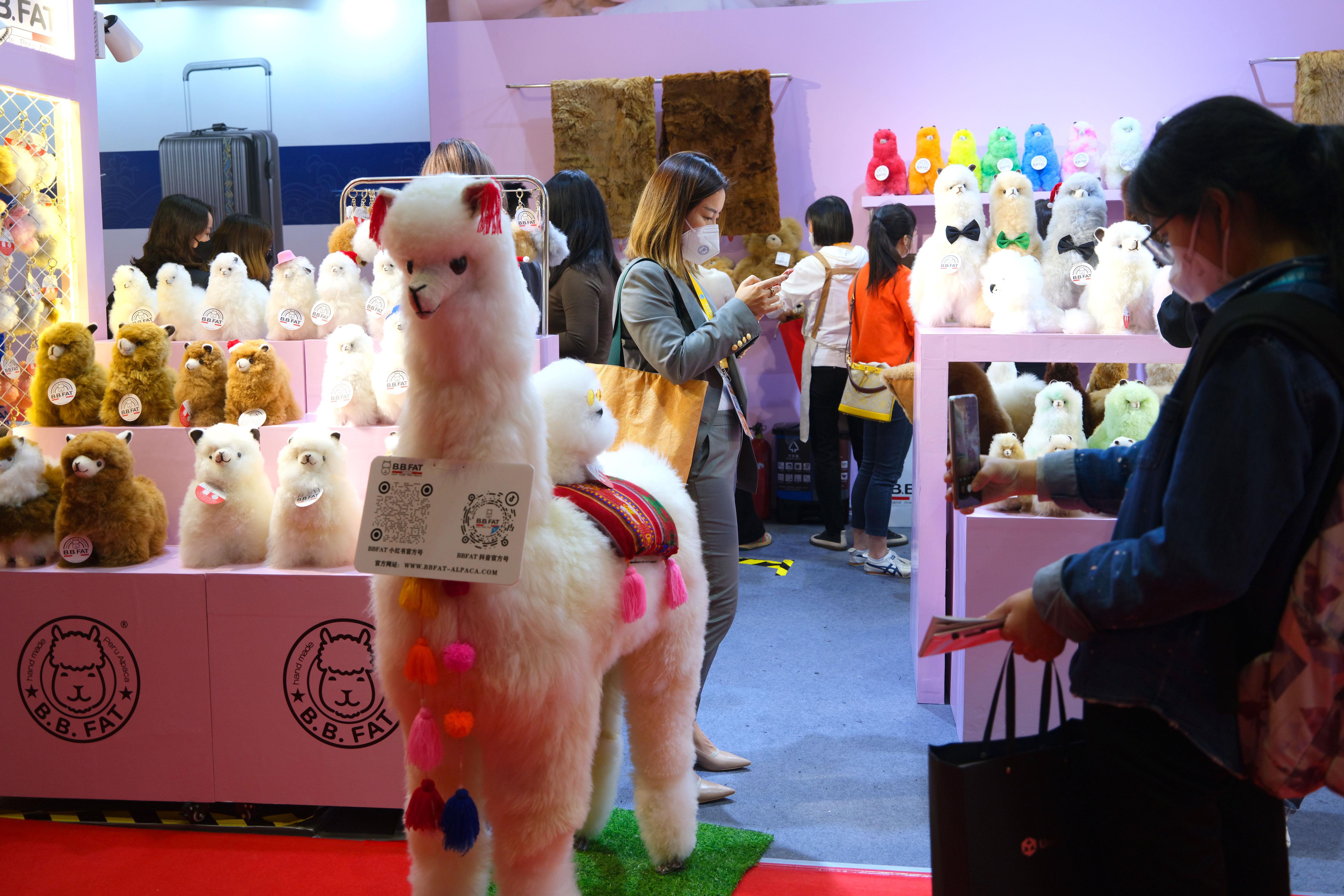 △2022年11月8日,在第五屆進(jìn)博會(huì)上,純手工制作的秘魯羊駝玩偶深受歡迎。