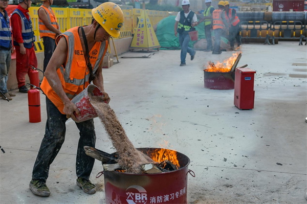 11月9日是第32個全國消防日。這次消防演練模擬火災(zāi)發(fā)生后如何使用干粉滅火器、干沙滅火,生活區(qū)宿舍起火員工俯身毛巾捂住口鼻逃生、昏迷受傷員工的轉(zhuǎn)移救治,以及消防救援機(jī)構(gòu)的介入救援等方面進(jìn)行演練。項目監(jiān)理單位點(diǎn)評時認(rèn)為,此次演練基本上是按照實景進(jìn)行的,進(jìn)一步增強(qiáng)了項目的應(yīng)急應(yīng)變、團(tuán)隊協(xié)調(diào)和處置保障能力,為應(yīng)對突發(fā)事件積累寶貴經(jīng)驗,保證安全生產(chǎn)工作全面落實。
