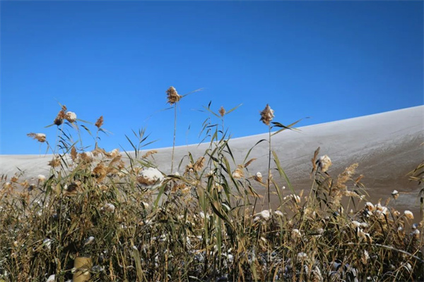 雪后的鳴沙山成一片雪海,白茫茫的沙丘和若隱若現(xiàn)的沙脊線,與泉水形成了獨(dú)特的冰雪奇觀,給人一種純凈、靜謐的感覺。今冬,一定不要錯(cuò)過鳴沙山的雪景,看潔白的霜花綴滿枝頭,體驗(yàn)如詩如畫的人間仙境,感受這片恰似與世隔絕的自然美景?。ㄓ浾邘浫A鋒 通訊員 田雅杰)