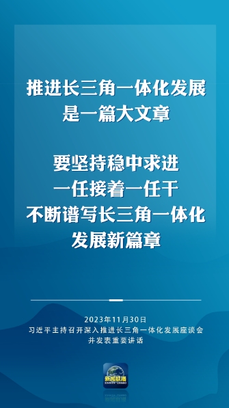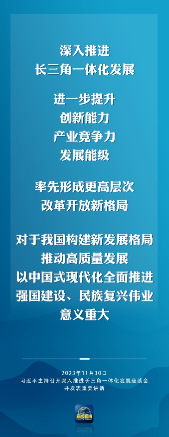 習(xí)近平強調(diào),要完整、準(zhǔn)確、全面貫徹新發(fā)展理念,緊扣一體化和高質(zhì)量這兩個關(guān)鍵詞,樹立全球視野和戰(zhàn)略思維,堅定不移深化改革、擴大高水平開放,統(tǒng)籌科技創(chuàng)新和產(chǎn)業(yè)創(chuàng)新,統(tǒng)籌龍頭帶動和各揚所長,統(tǒng)籌硬件聯(lián)通和機制協(xié)同,統(tǒng)籌生態(tài)環(huán)保和經(jīng)濟發(fā)展,在推進共同富裕上先行示范,在建設(shè)中華民族現(xiàn)代文明上積極探索,推動長三角一體化發(fā)展取得新的重大突破,在中國式現(xiàn)代化中走在前列,更好發(fā)揮先行探路、引領(lǐng)示范、輻射帶動作用。