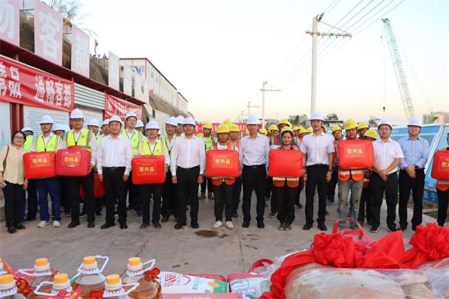 年終歲寒,元旦將至。為深入貫徹落實黨的二十大和中國工會十八大精神,把黨的關懷和公司工會的溫暖及時送到廣大職工群眾的心坎上。12月11日下午,中鐵一局“員工關愛送慰問”活動走進中鐵一局梅龍鐵路項目施工現(xiàn)場。中鐵一局黨委副書記、工會主席王新年,一公司總經理韓勝,副總經理、工會主席應曉峰等共同為項目一線參建職工送去暖心關愛。