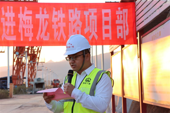項目負責人董飛表示,梅龍鐵路項目全體參建員工將積極踐行“在安全上不放松一時一刻,在質量上不讓步一絲一毫,在進度上不拖延一分一秒,在效益上不浪費一錢一厘,在環(huán)保上不破壞一草一木”的主人翁精神,做開路先鋒,展鐵軍風范,全力建造精品梅龍,打造安全、綠色、創(chuàng)新、廉潔工程。