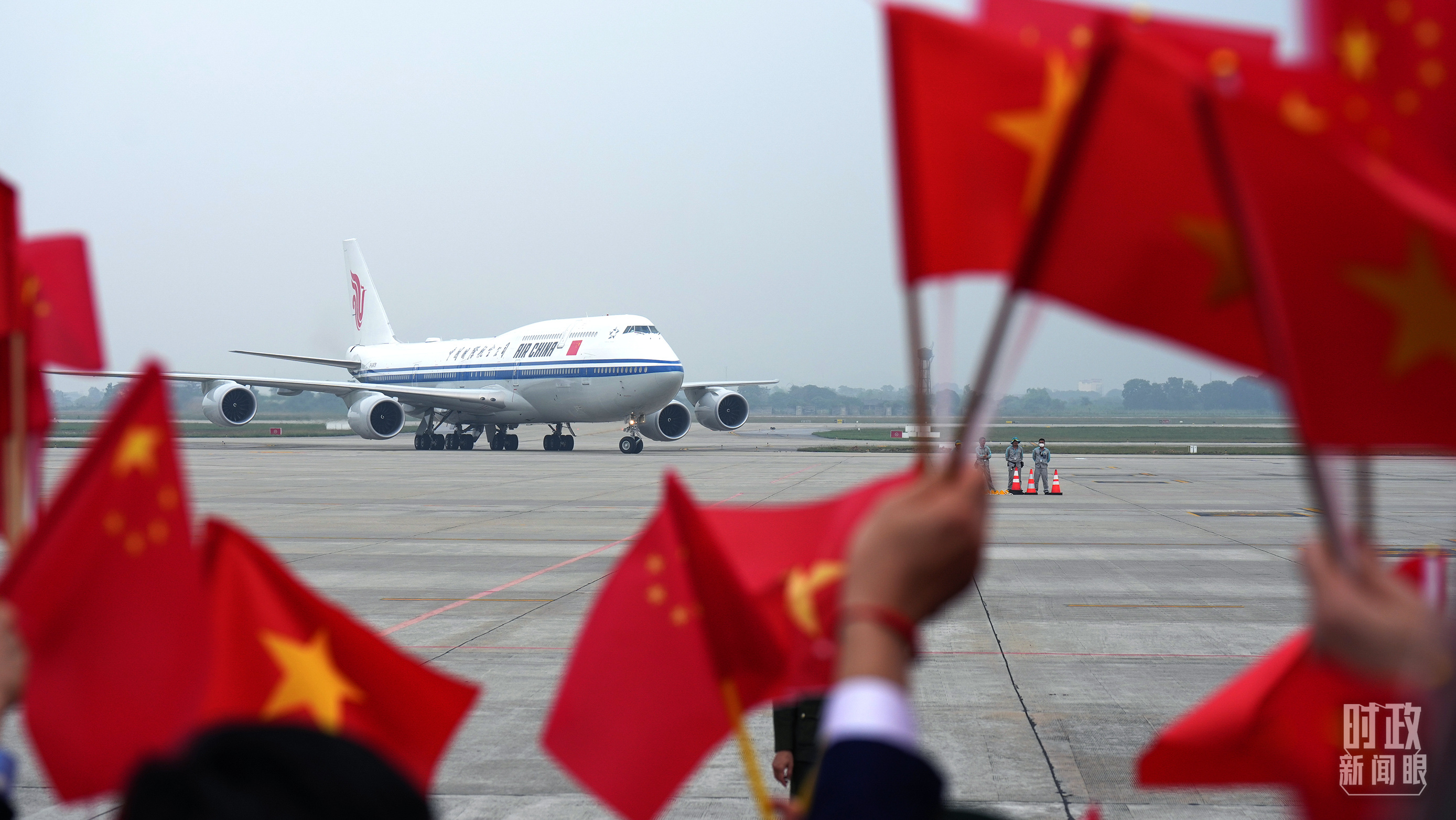 △習(xí)近平乘專機(jī)抵達(dá)越南河內(nèi)。(總臺國廣記者李晉拍攝)