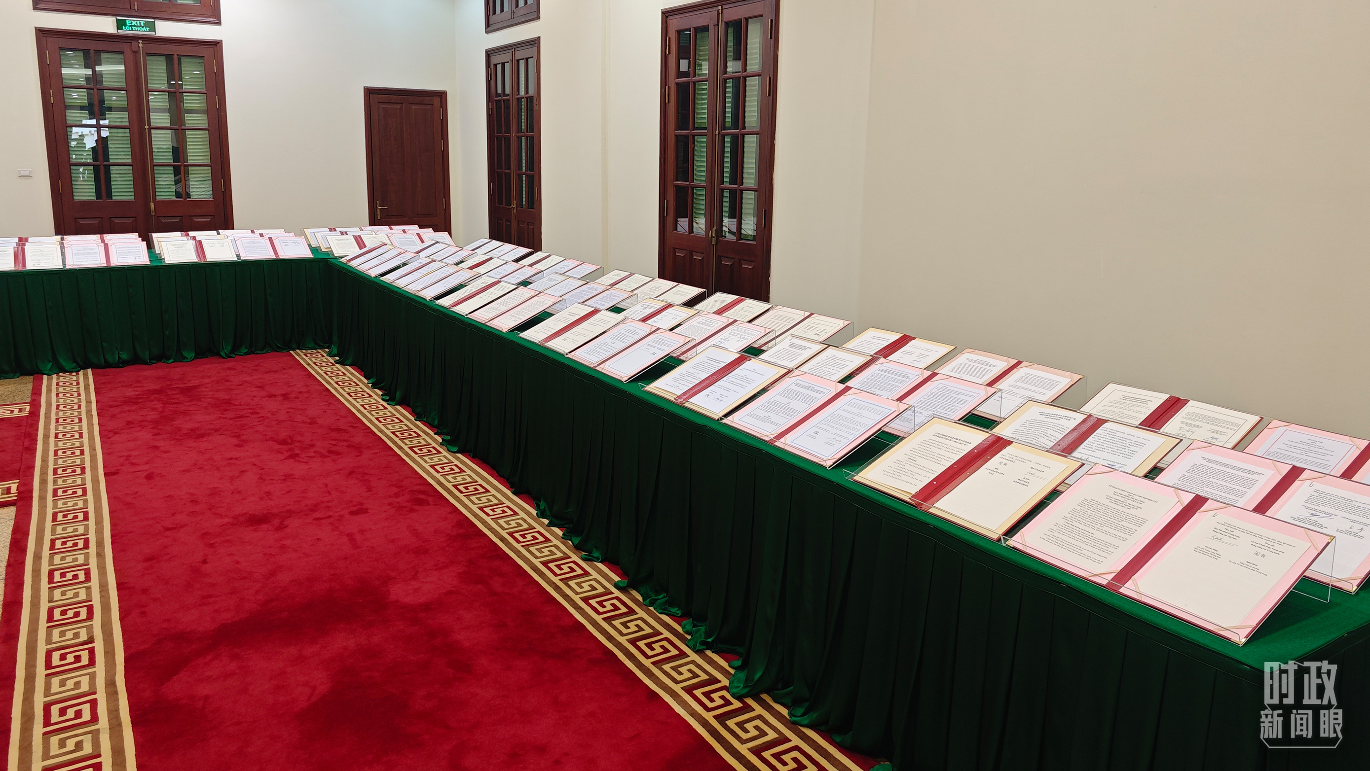 △會談后,兩黨總書記共同見證雙方簽署的雙邊合作文件展示,涵蓋共建“一帶一路”等30多個領(lǐng)域。(總臺央視記者耿小龍拍攝)