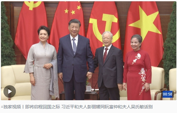 12月13日下午,在結(jié)束對越南進(jìn)行國事訪問即將啟程回國之際,習(xí)近平夫婦同越共中央總書記阮富仲夫婦話別。一段對話,余韻悠長。